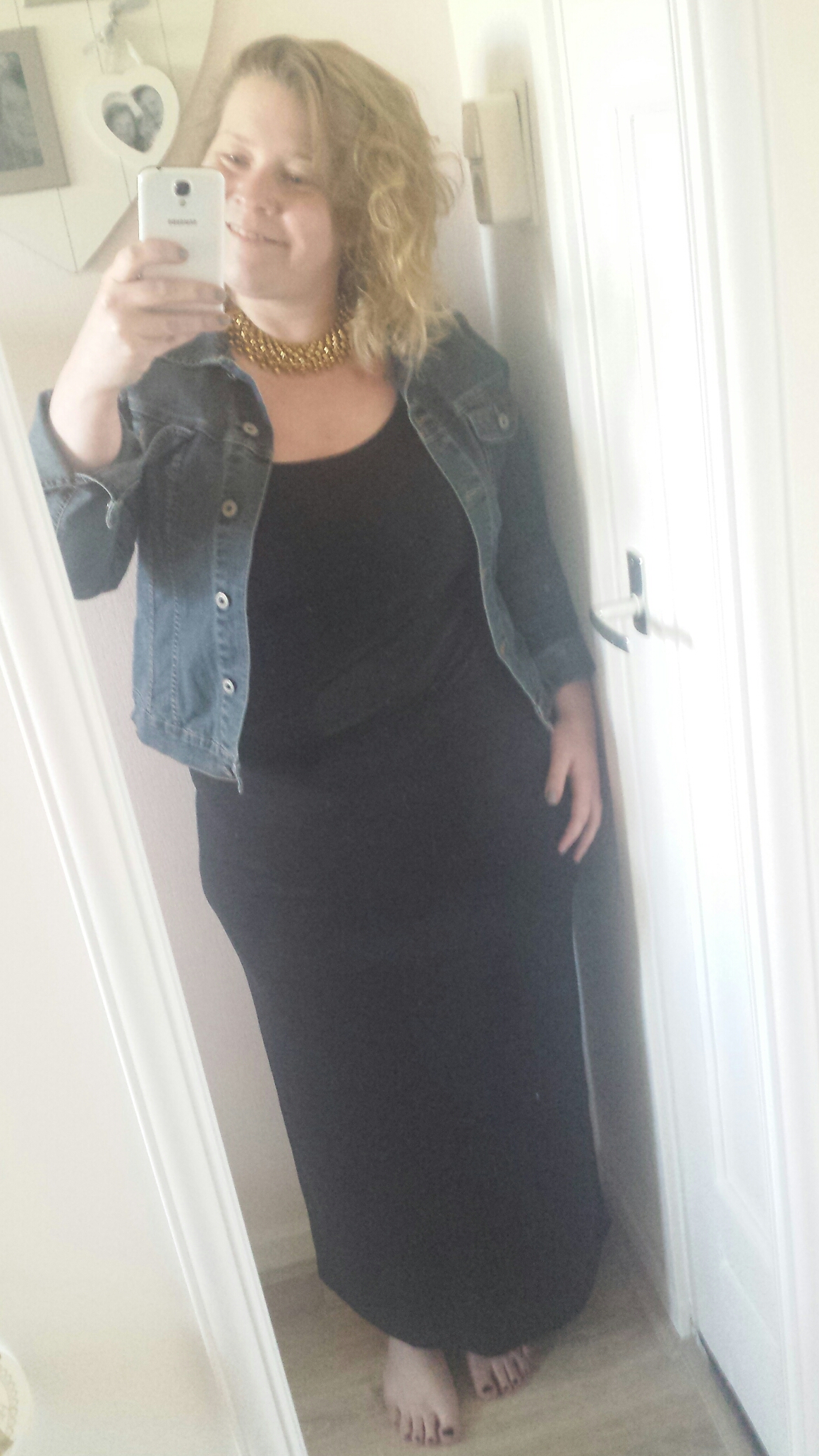 Maxi rok: Vintage, from my Momma | Top: Basic zwart, Vero moda | Spijkerjas: Dark denim, Cars