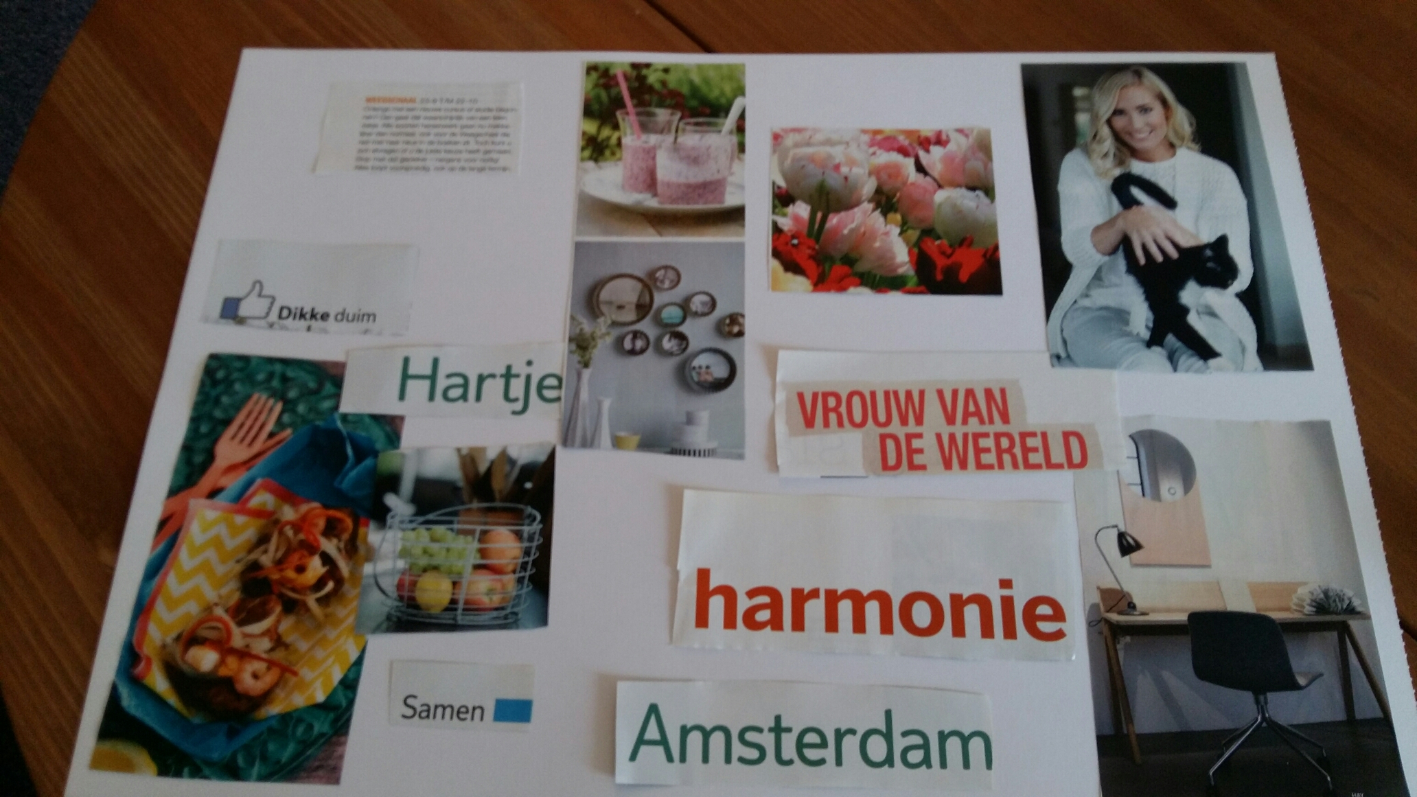 5. Schrijf hierna in een notitieblok of in een kleine legenda naast het moodboard, waar de afbeeldingen voor staan. Waar dacht je aan doe je ze uitzocht en wat vertelt het over jou?