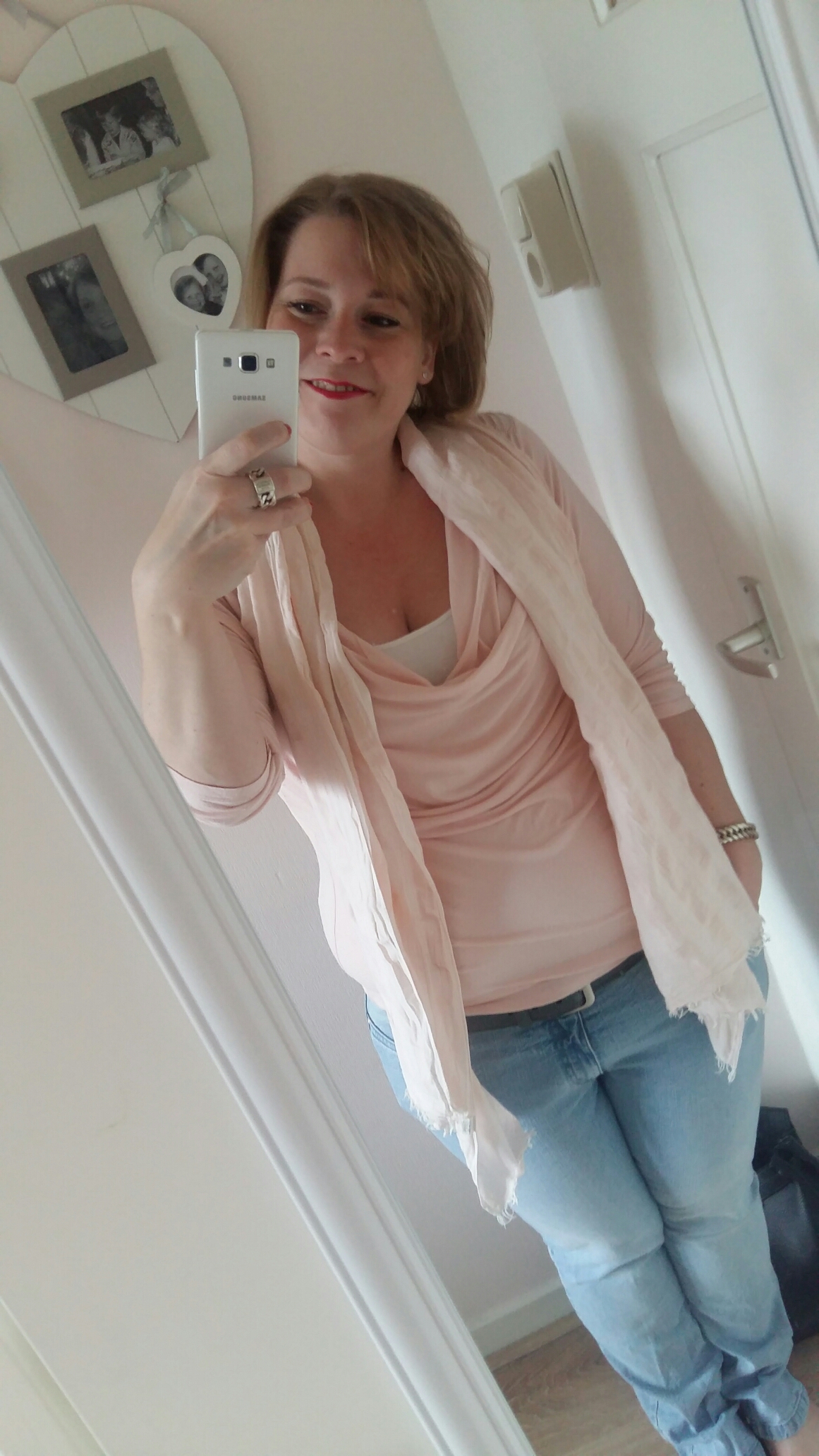 Zoals ik eerder zij is het niet echt mijn kleur, maar naast deze top en sjaal heb ik ook een maxi rok in de kleur en nog een 3tal tops. Het is en blijft 1 van de meest vrouwelijke kleuren die je aan kan trekken.