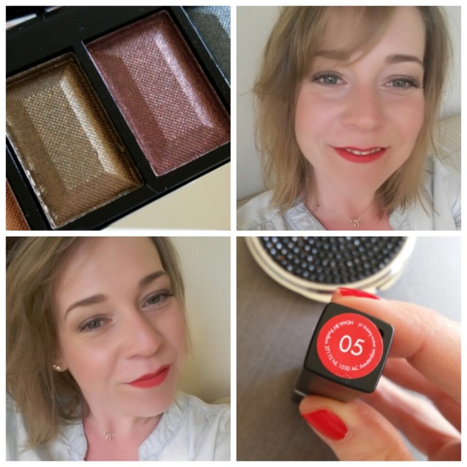 Het dragen van blauwe oogschaduw doe ik vrijwel nooit, dus deze heb ik als enige niet geprobeerd. De legergroen en donker paars kleurige heb ik op deze foto’s gecombineerd. Het dragen van donkere oogschaduw doe ik eigenlijk alleen tijdens feestjes of andere avonden uit. Deze groen, bruin en paarse combinatie, vind ik leuker dan ik eigenlijk in eerste instantie had verwacht! Op het palet, ogen de kleuren feller en sprekender als wanneer je ze opbrengt, dit geldt eigenlijk voor allemaal. En dit gecombineerd met mijn favoriete rode lippenstift, ook van de HEMA, staat stoer, een beetje femme fataal en mysterieus. Ook maakt de oogschaduw mijn ogen wat groener.